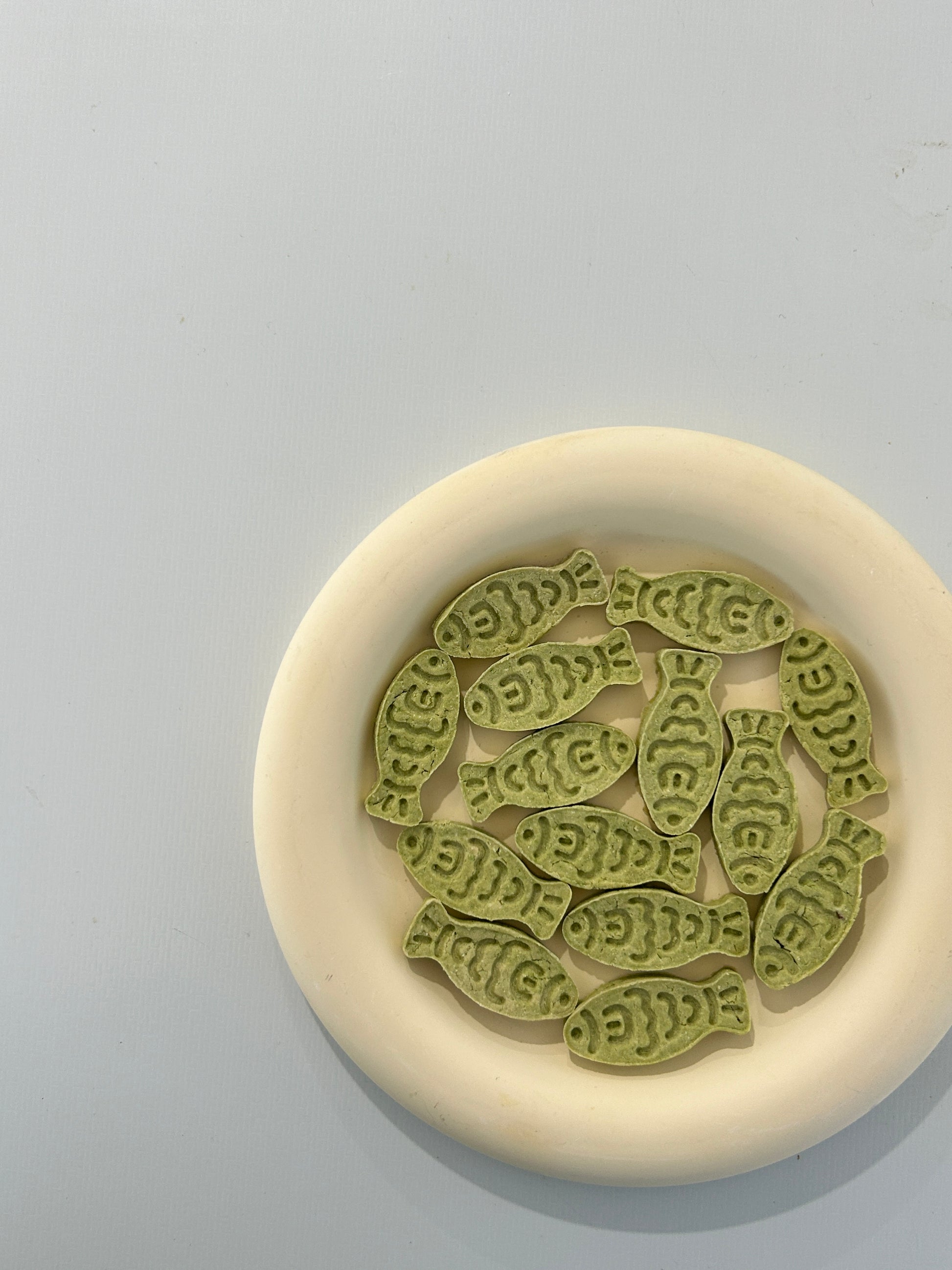 Ingredients include freshly ground cat grass, chicken breast and feta cheese.80g